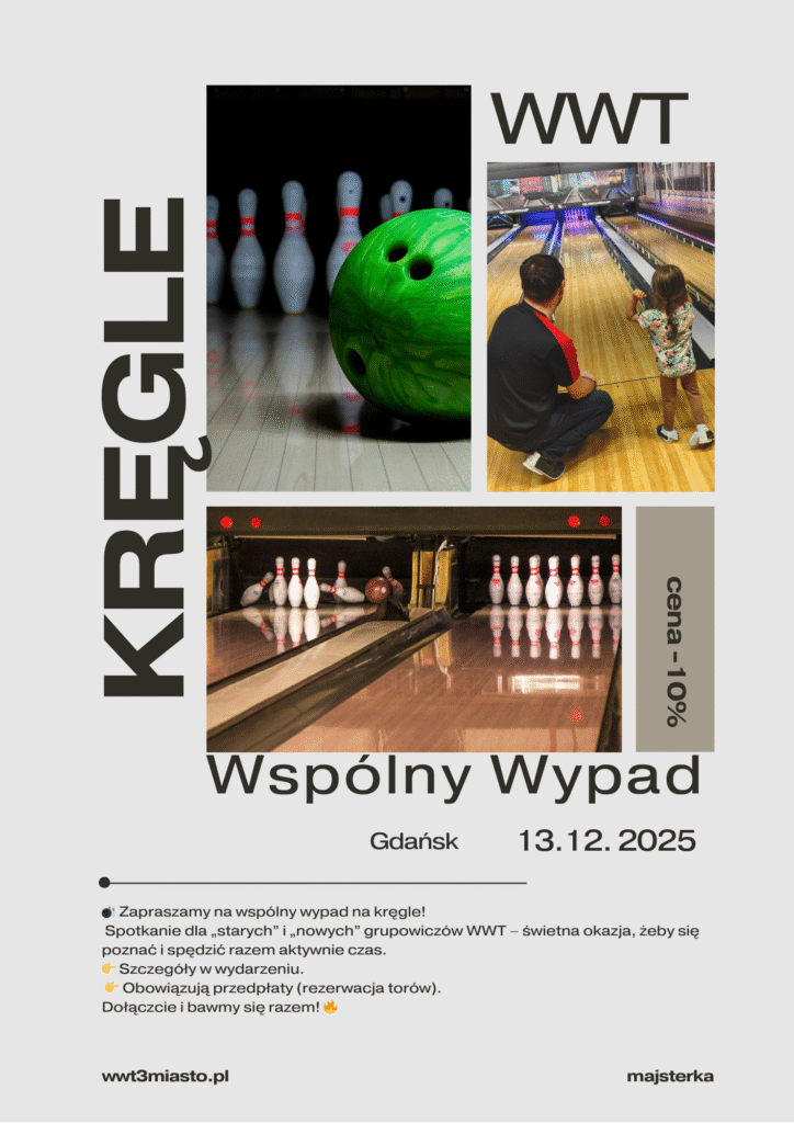Spotkanie „starych” i „nowych” grupowiczów.. Zabaw się na kręglach i spędź czas w miłym towarzystwie.